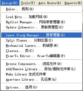 在PCB界面中点击主菜单Design 再点击Layer Stack Manager 如图: