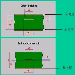 2. 对于两铜面间夹两个信号层(offset stripline),