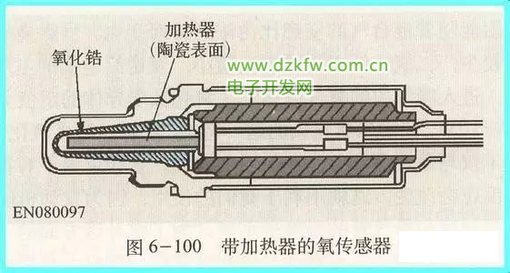 氧化锆式氧传感器主要由氧化锆(ZrO2)、和护套组成。氧化锆式氧传感器有加热式的和非加热式的两种。加热式的氧传感器在锆管中间有加热棒, 锆管是由陶瓷体制成、固定在带有安装螺纹的固定套中。