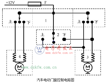 电动门窗上升和下降是通过控制电动机正反转来实现的,若门窗上升对应电动机正转,则门窗下降对应电动机的反转。根据电动机的理论可知,对永磁电动机而言,改变电动机转向的方法,就是改变电枢电流的方向。