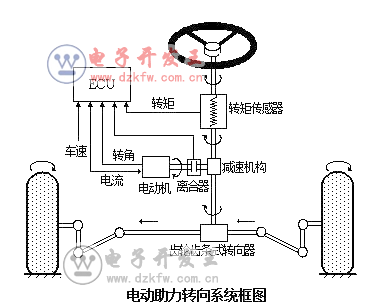转矩传感器检测作用在输入轴的力矩,ECU根据汽车里的车速传感器和转矩传感器的信号控制电动机的旋转方向和助力电流的大小,电动机的力矩通过减速机构作用到小齿轮上,实现助力转向。