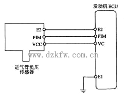 丰田车进气压力传感器电路图如图2-27所示,它输出的是电压信号,用万用表检测的方法如下: