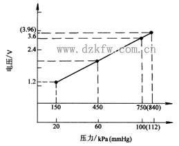 接通点火开关,端子VC和E2间的电压应当是4.5~5.5V。ECU端子PIM与E2之间的信号电压应当是3.3~3.9V,发动机怠速时信号电压约1.5V左右,随着节气门开度的增加,信号电压应上升,真空度与电压信号关系应符合图所示的关系。