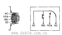有些节气门位置传感器上装有怠速开关,这个开关与控制单元连接。这类传感器的接线方式与三线传感器相同,多出的一根线接在怠速开关上(图2-20)。