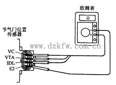 表2-3是丰田公司提供的节气门位置传感器电阻值检测数据。