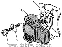 1-节气门位置传感器;2-节气门体组件;3-传感器固定压板;4-传感器固定螺钉