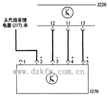 ②若试灯不亮,应检查熔断器至空气流量计端子2之间的线路是否良好,若正常,应检查燃油泵继电器。