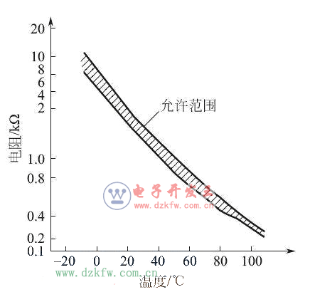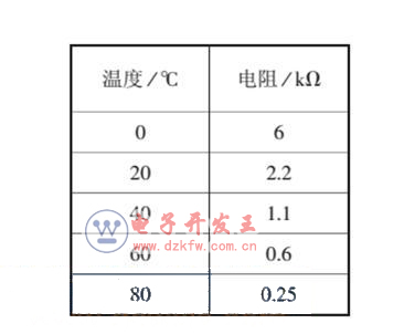 该温度传感器单元利用了一个对温度改变敏感的电热调节器。该电热调节器的电阻值随温度的升高而降低。