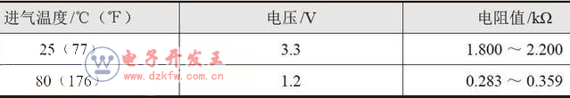 检查进气温度传感器,可测量端子间的电阻,在20℃时其值为2.21~2.69kΩ,在80℃时电阻值为0.322kΩ。电阻值如不正常,应更换进气温度传感器。