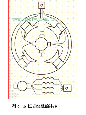 该电动机四个磁场绕组相互并联后再与电枢绕组串联,仍为串励式电动机,如图4-45所示。基本不见与常规起动机相似。