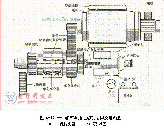 ⑴ 平行轴式减速起动机: