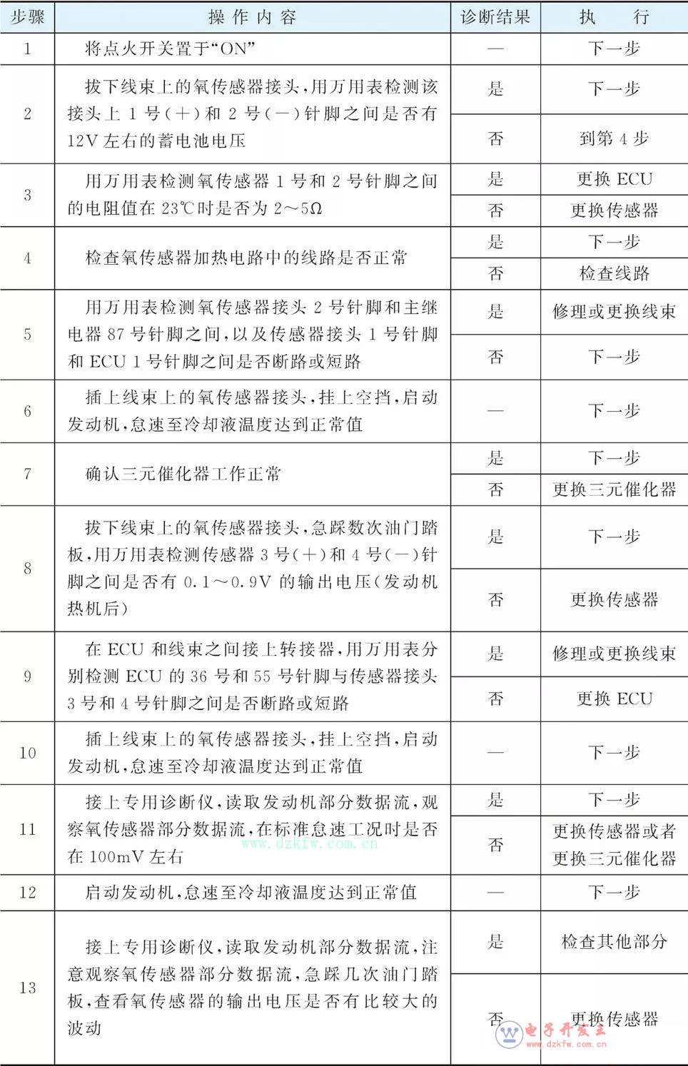 对于加热型氧传感器,如果加热器电阻丝烧蚀,就很难使传感器达到正常的工作温度而失去作用。