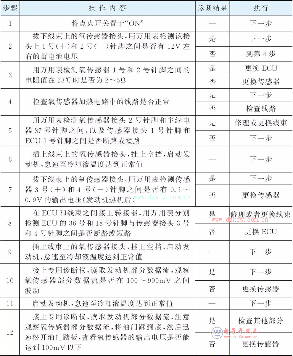 在检查氧传感器数据流的时候一定要注意发动机工作状态,一定要让发动机的工作温度达到正常的工作温度,因为氧传感器在300℃以上时才开始正常工作。