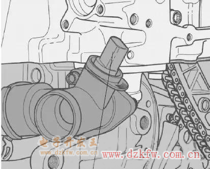 部分车型在散热器出口的管路上还安装了散热器出口冷却液温度传感器,用于测量散热器出口的冷却液温度。通过比较两个传感器信号来控制散热器风扇的工作。