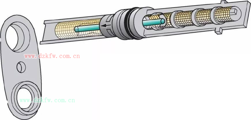 电磁线圈中就有电流流过产生磁场,该磁场将弹簧片拉靠到旋转着的皮带轮上(这时间隙“A”就不存在了),皮带轮和压缩机的驱动轴之间建立起了力的传递关系。这时压缩机就开始工作了。
