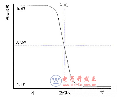 当混合气处于理论空燃比14.7:1(λ=1)附近时,传感器电压变化率最高,瞬间出现0.45V的电压。