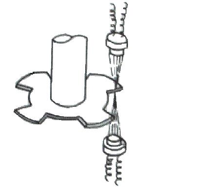 工作情况:信号转子由分电器轴驱动,其上的叶片(遮光片)数与发动机的气缸数相等。当信号转子随分电器轴旋转时,叶片和缺口不断地经过光源和光敏二极管之间,光敏管在光源照射下,输出低电平,在没有光源的情况下,输出高电平,故产生脉冲信号,经过电子控制器处理后,输出点火信号。