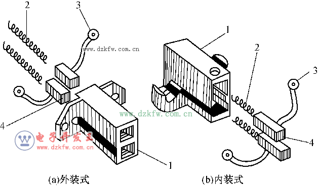 1—电刷架; 2—弹簧; 3—接线端子; 4—电刷