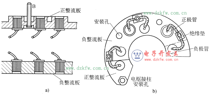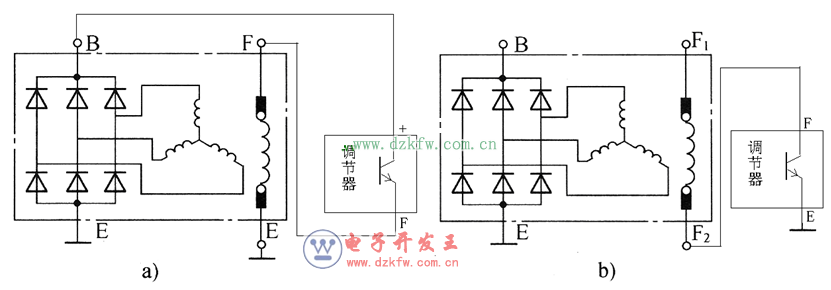 a) 内搭铁交流发电机 b) 外搭铁交流发电机