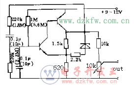 频率在10Hz以下的振荡器采用RC振荡器是很适合的。这里采用齐纳二极管来稳定输出幅度,输出的峰-峰电压可在0~4V间调整,频率为6.5Hz。如采用图中括弧内的数值,频率可低至0.01Hz。振荡器吸取的电流约为3mA。