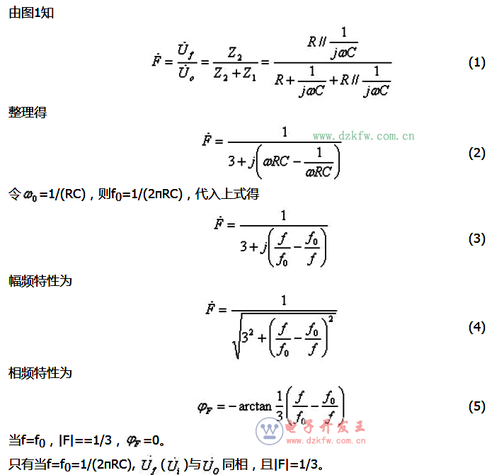 当f=fo=1/2 RC时,Uf的幅值达到最大,等于U幅值的1/3,同时Uf与U同相。