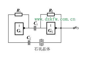 图1是另一种使用较多的方波发生器电路,由两个“非”门组成,每一个“非”门输出端与输入端之间连有一个电阻