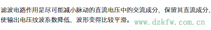 滤波电路常用于滤去整流输出电压中的纹波,一般由电抗元件组成,如在负载电阻两端并联电容器C,或与负载串联电感器L,以及由电容,电感组成而成的各种复式滤波电路。