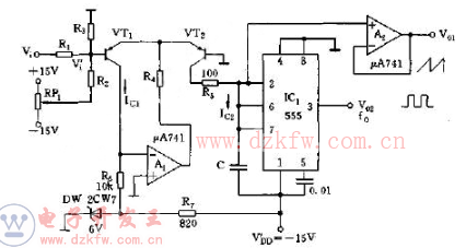 用NE555的指数式压控振荡器电路图