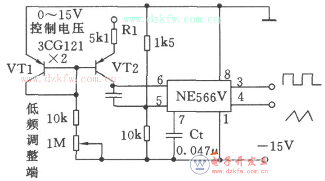 宽范围可控的压控振荡器(NE566V)电路图