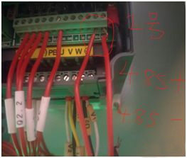 二、这里我使用的是2台英威腾的变频器,就把两台变频器的485通讯端子正接正,负接负,和PLC485接口的3号针和8号针接在一起(3正,8负),用网线链接PLC和电脑。如图:
