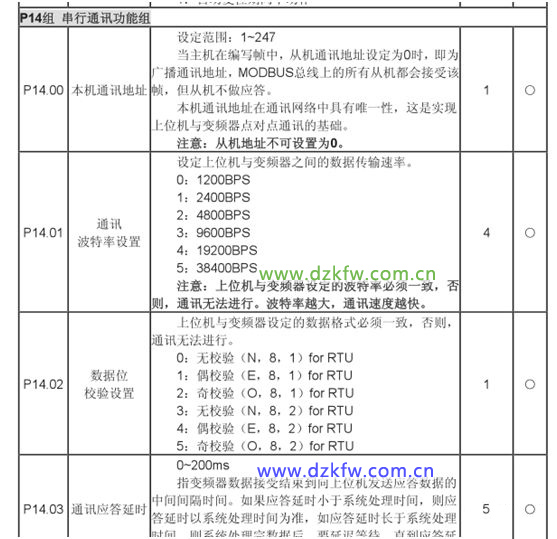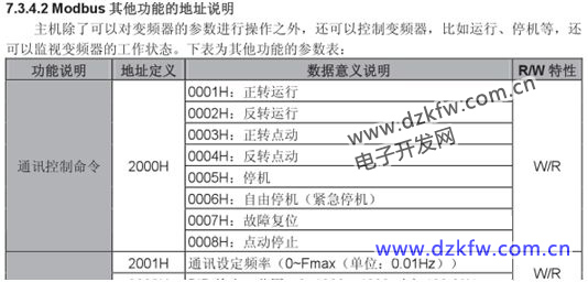 下图为变频器的通讯寄存器地址列表,vw0内的值为0001-0008并对应其相应的功能。