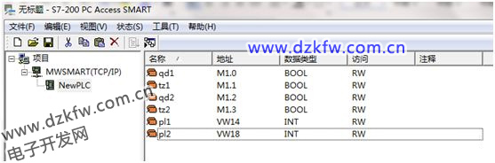 将刚才在PC ACCESS里面创建的变量添加到WINCC。