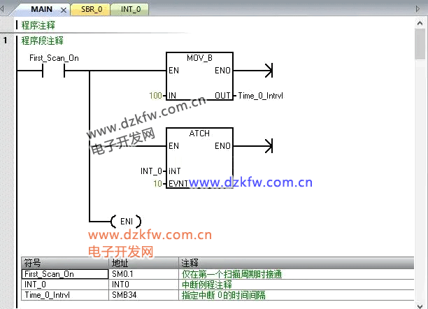 2、定义中断程序,设置中断周期为100ms。我们以INT_0中断子程序为例