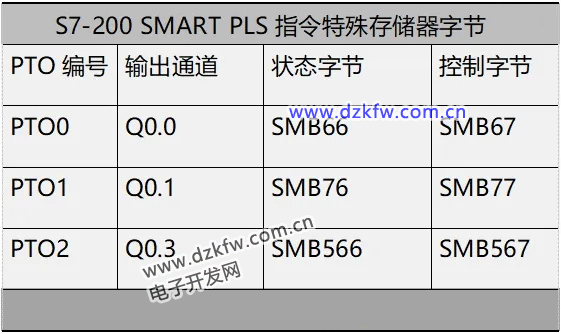 与PTO相关的特殊存储器字节可以分为两类:一类是用于控制PTO信号的,称为控制字节;另一类是用来表示PTO状态的,称为状态字节;
