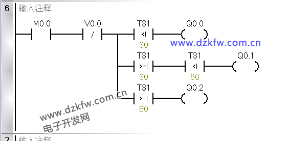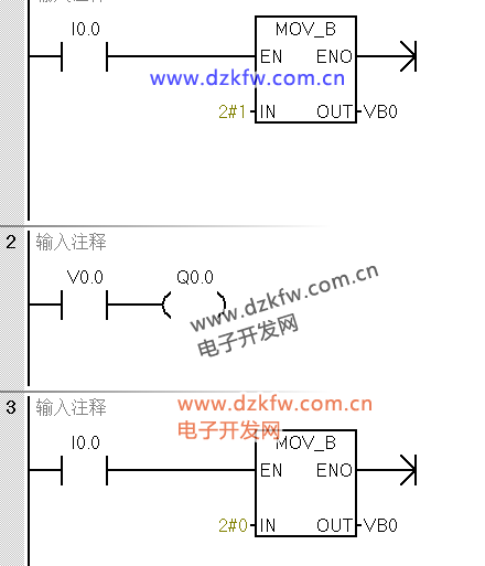 例:按I0.0,使Q0.7<--Q0.0、Q1.7<--Q1.0全亮