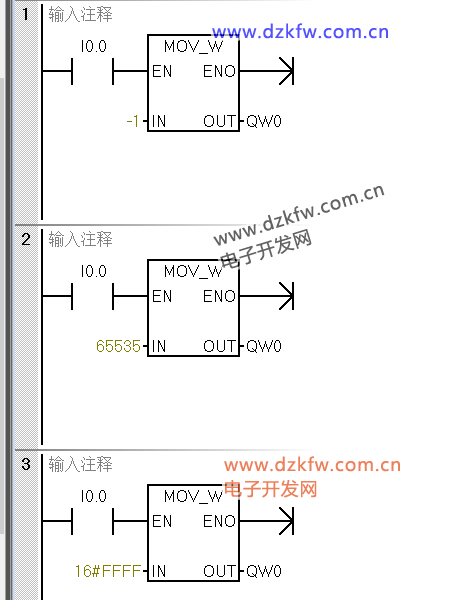 MOV_W为例,传送整数,当传送-1时,out显示的是65535,可实际out是-1,将out用于加法运算:out+1+0