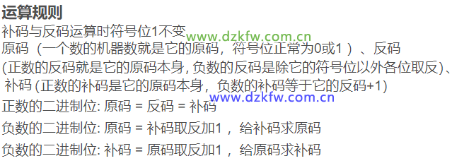 注:负数在计算机中是以补码的形式进行存储的,也是以补码的形式进行运算的