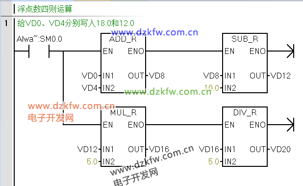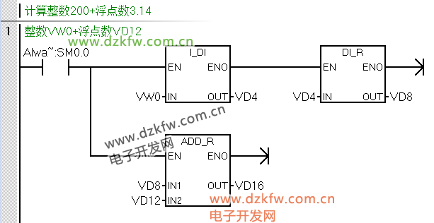 VW0写入200,给VD12写入3.14即可;