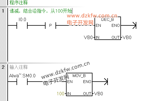 例:按I0.0对VB0递减(结合沿指令)