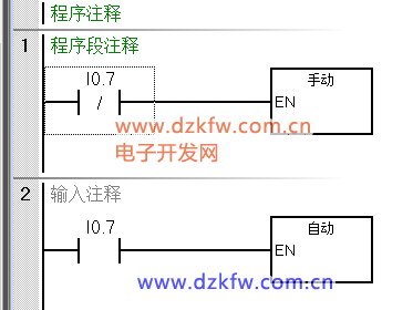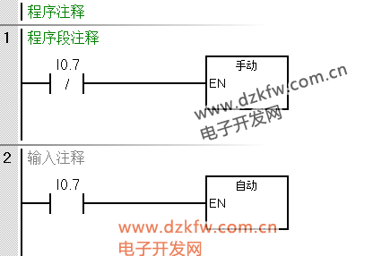 例:手自动转换,手动自动转换开关I0.7;(0手动,1自动)