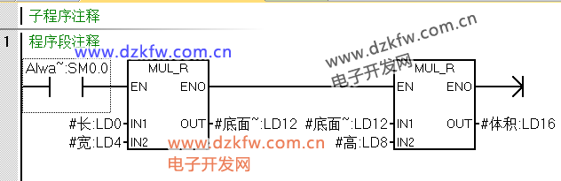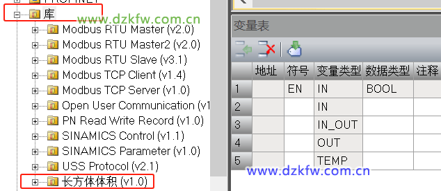 IN:输入;OUT:输出;IN_OUT:中间变量(若将底面积设置成中间变量,在子程序和主程序的引脚都能看得到)TEMP:临时变量(若将底面积设置成临时变量,在主程序中使用时,管脚处就看不到底面积了)