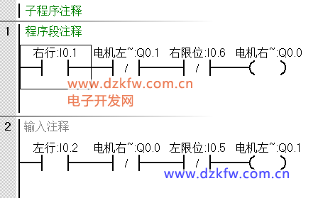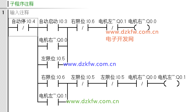 在自动模式下,按下启动,开始右行,碰到右限位,自动左行,碰到左限位,又开始右行,如此循环。