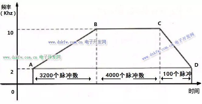 2)确认包络表首地址,向包络表里写入每段的脉冲数,初始频率和终止频率。