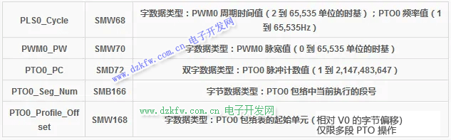 PLS指令会从特殊存储器SM中读取数据,并按照存储数值控制PTO/PWM发生器。这些寄存器的含义见下表: