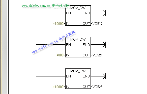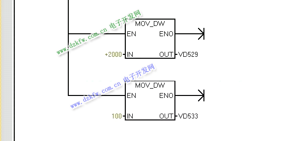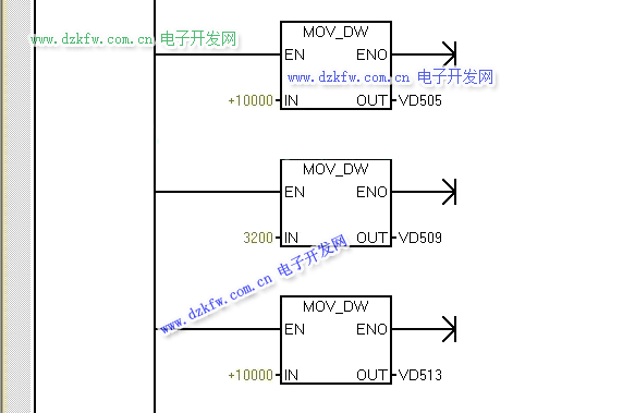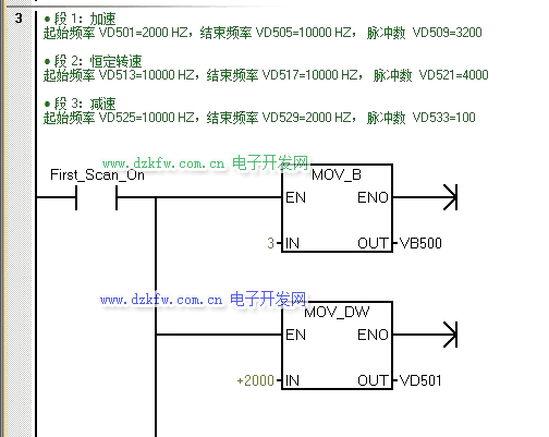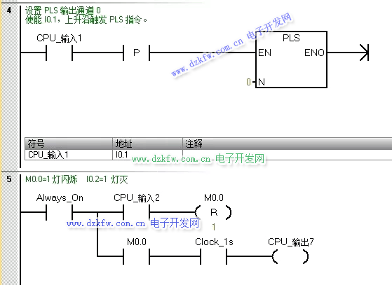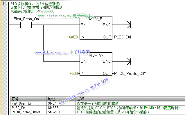 多段管线:在多段管线模式,CPU自动从V存储器区的包络表中读出每个脉冲串的特性。在该模式下,仅使用特殊存储器区的控制字节和状态字节。选择多段操作,必须装入包络表在V存储器中的起始地址偏移量(SMW168或SMW178)。时间基准可以选择微秒或者毫秒,但是,在包络表中的所有周期值必须使用同一个时间基准,而且在包络正在运行时不能改变。执行PLS指令来启动多段操作。