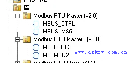 我们如果采用的是CPU本地的串口,那么我们选择库文件为Modbus RTU Master;若是扩展通讯板,则选择Modbus RTU Master2。
