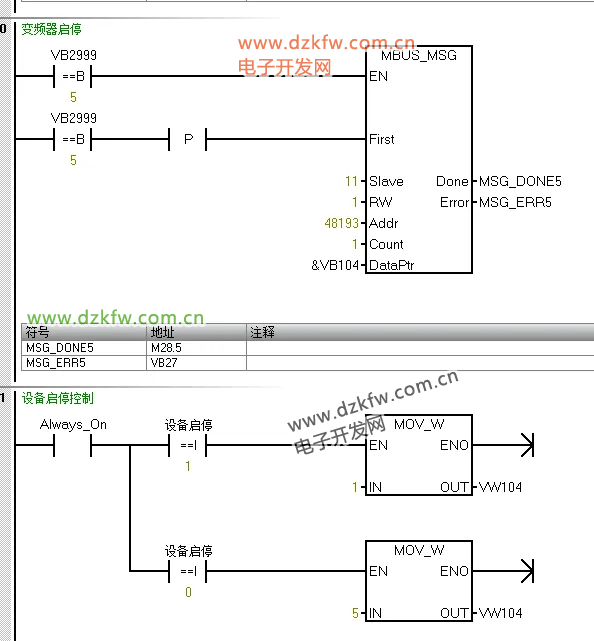 当48193=1时,变频器启动;当48193=5时,变频器停止。