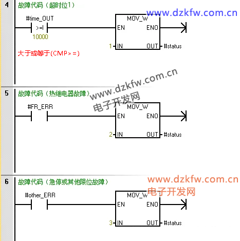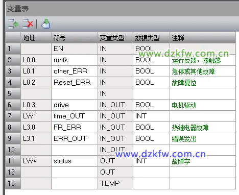 (1)启动或停止超时报故障(1.启动信号已给,但是接触器没吸合;2.停止信号已给,但是接触器没断开)