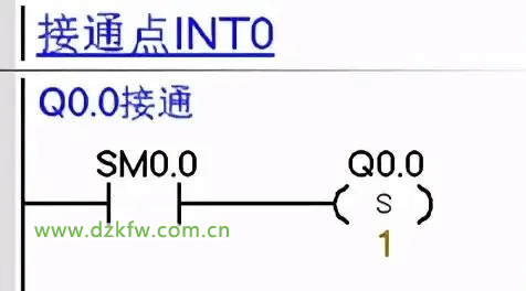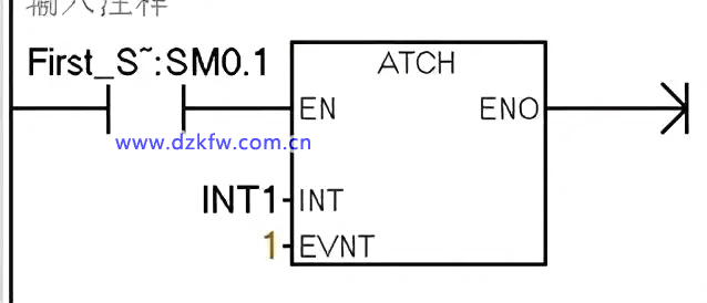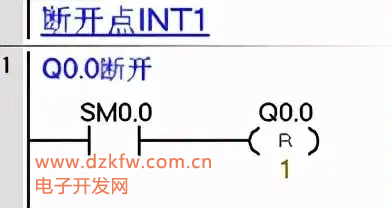 如下图把1号中断事件(I0.0下降沿)与中断程序1号INT1相连接