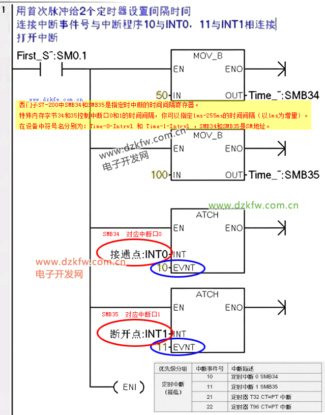 PLC已设计好了来处理以上的中断事件指令。处理中断事件按以下步骤: